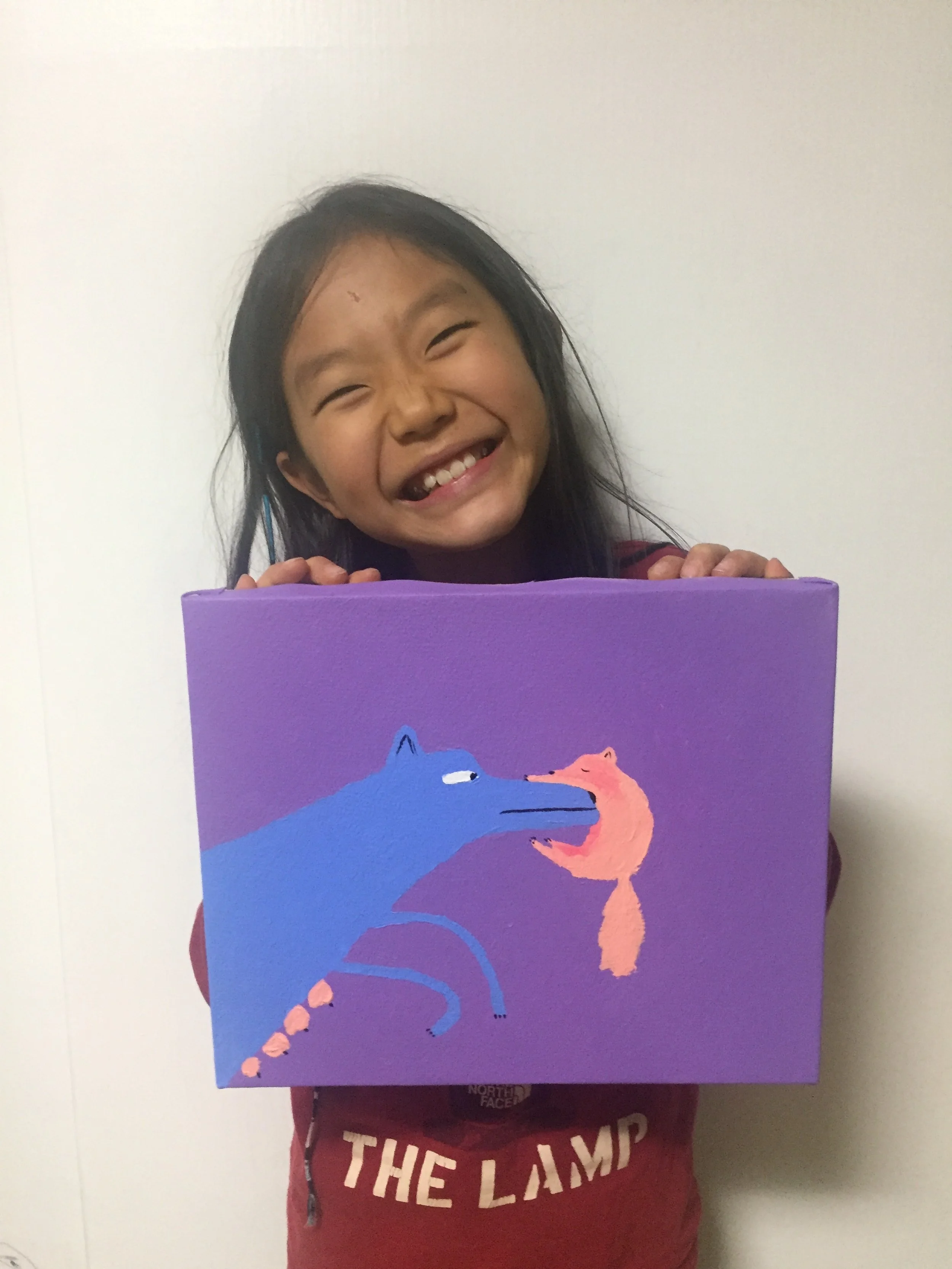 My younger sister, Yudam, who is touching my drawings without permission